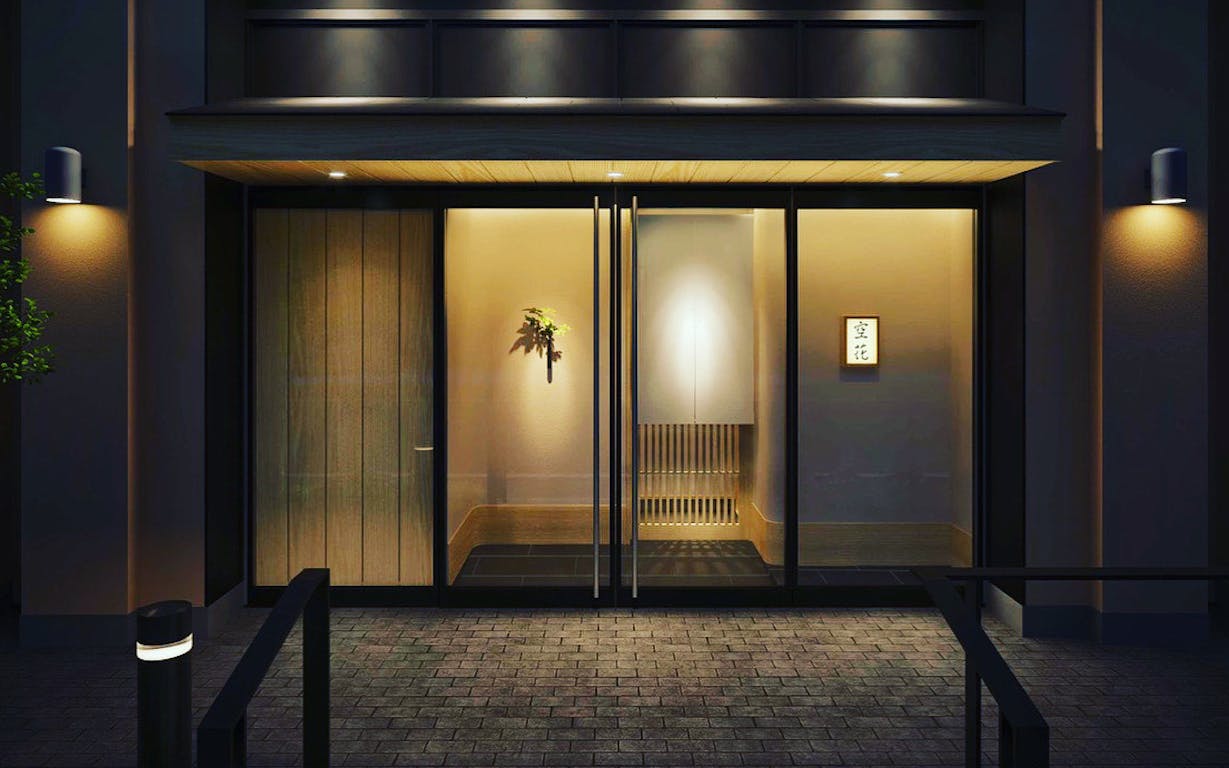 日本料理「空花」は、鎌倉・長谷で人気だった和食の名店が2020年10月に東京・神谷町に移転したお店。鎌倉では築90年の古民家にお店を構えていましたが、移転後の新店は麻布や虎ノ門にも近い神谷町エリアらしいシックで洗練された雰囲気となっています。
