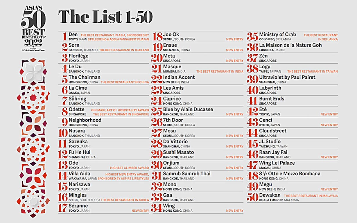 2022年版「アジアのベストレストラン」受賞一覧