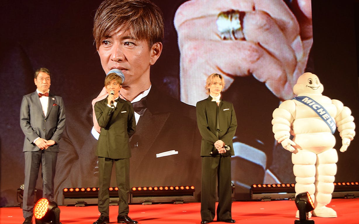今回のセレモニーには、日本ミシュランタイヤが全面協力したスペシャルドラマ『グランメゾン東京』、映画『グランメゾン・パリ』から、木村拓哉氏、玉森裕太氏がスペシャルゲストとして登場し、三つ星レストランの発表を行いました。