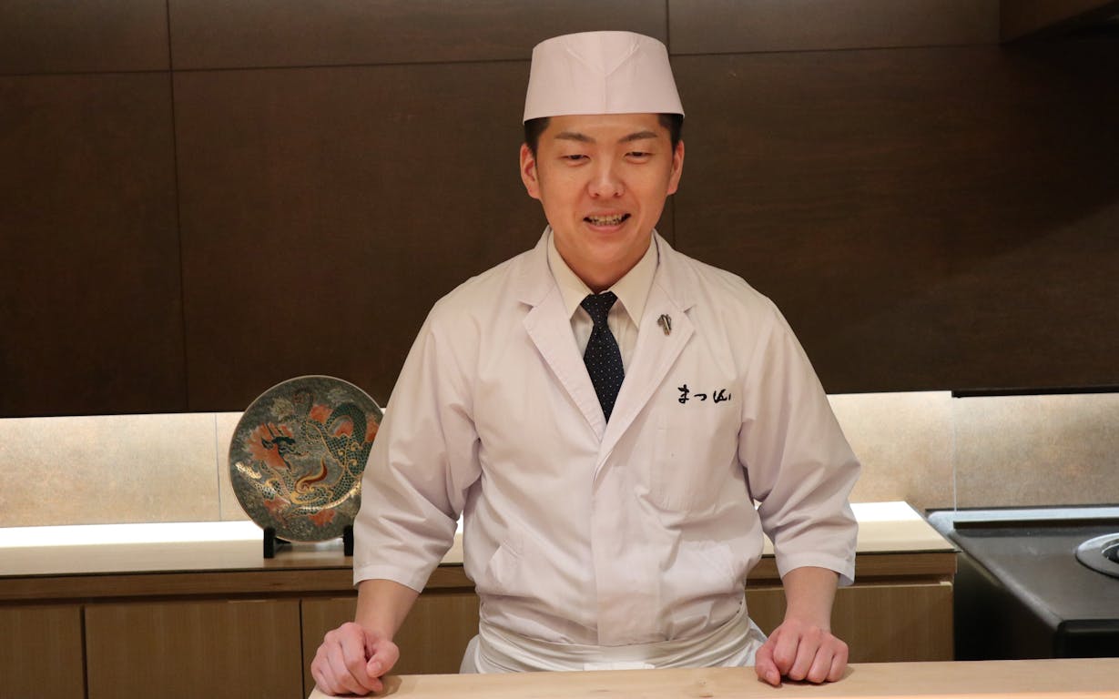 1981年福岡県北九州市出身。高校卒業後、専門学校にてエンジニアの資格を取得し20歳の時に大手自動車メーカーに就職。その後、接客業に魅力を感じフランチャイズ系のたこ焼き屋へ転職。25歳の時に本格的に料理の世界へ飛び込み、約5年の研鑽を経て30歳で「御料理 まつ山」を開業する。2014年にはミシュラン福岡・佐賀特別版で一つ星獲得。実績に満足せず、研鑽と挑戦を日々し続けている。