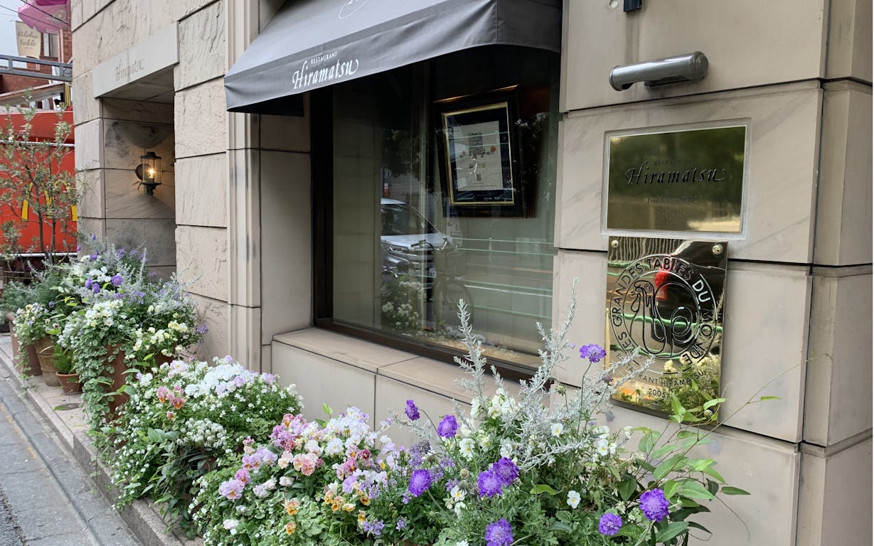 最寄り駅は広尾。お花に囲まれた邸宅のようなこちらが、「レストランひらまつ 広尾」です。