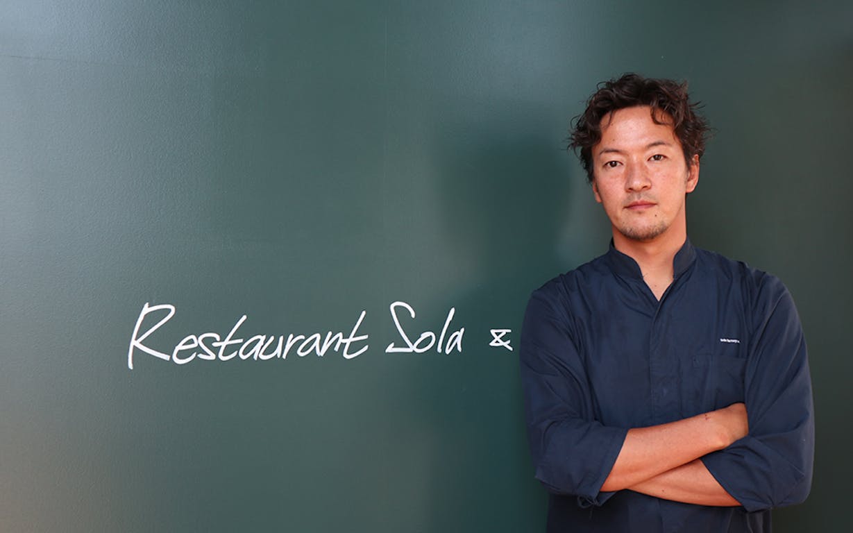 フレンチの鉄人・坂井宏行シェフに憧れ「ラ・ロシェル」で研鑽を積んだ後、世界中の料理を見て回るため、世界各国をバックパックで巡り、その後フランス・パリにおいて「Sola Paris」を開業。わずか1年足らずでミシュランの一つ星に輝いた実力者です。