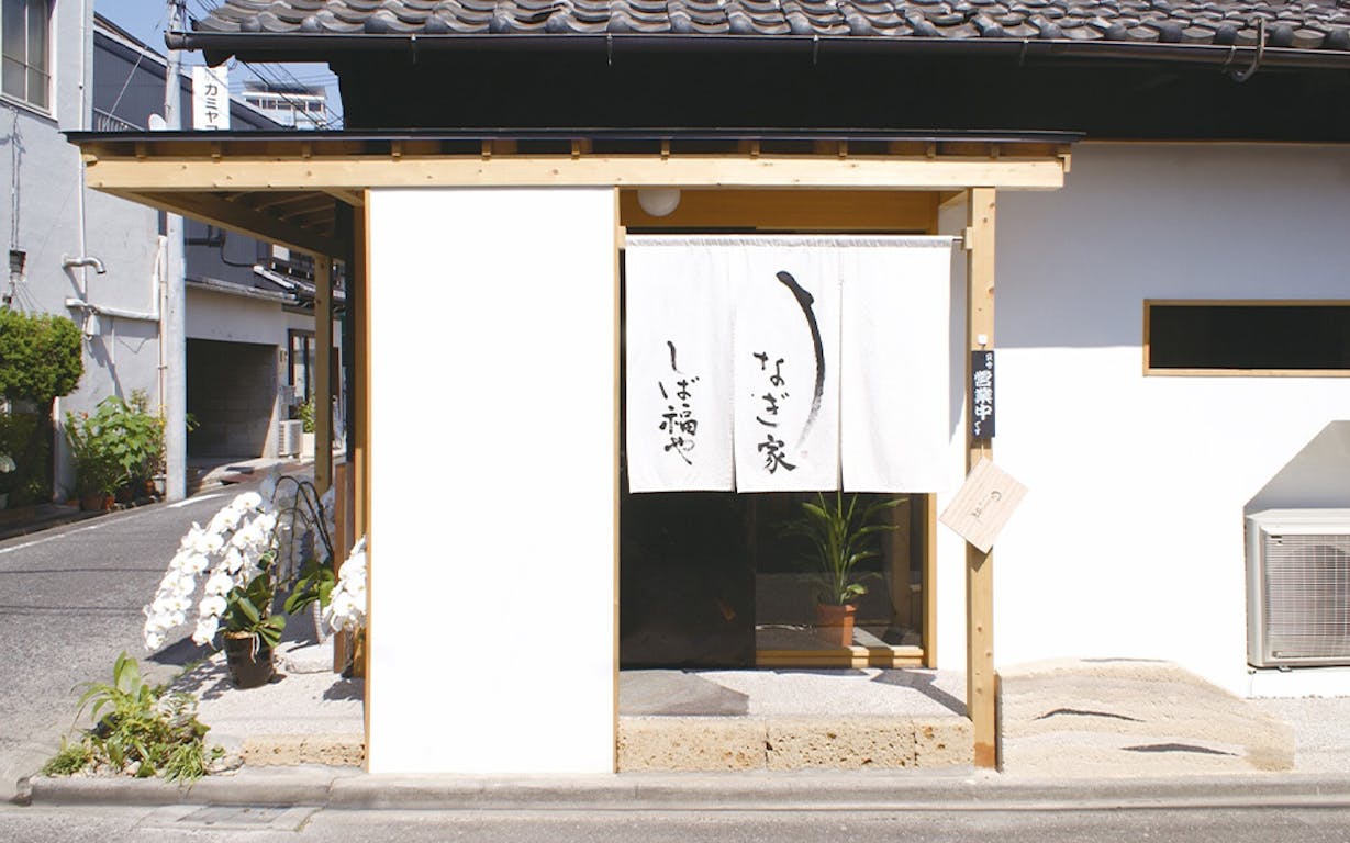 愛知県・国際センター駅から徒歩約6分。名古屋駅から名古屋城へ向かう途中の四問道エリアの一角にある「うなぎ家 しば福や」。江戸時代から続く町並みの風情を色濃く残すこの地で2018年に暖簾を掲げました。