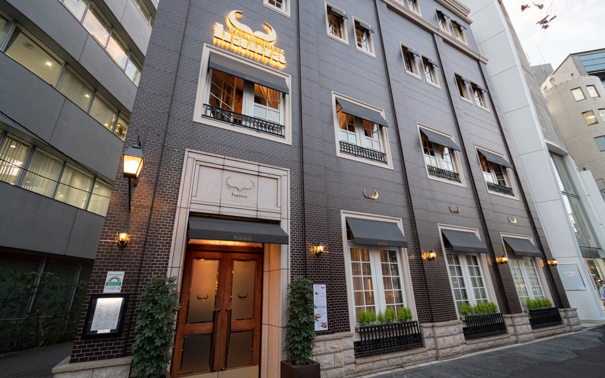 千代田線「乃木坂駅」から徒歩1分。外苑東通り沿いに建つ「ステーキハウス ハマ 六本木本店」は、レンガ調でシックな外観が目印。1964年にこの地でオープンして半世紀以上、多くの美食家はもちろん、著名人をも魅了し続けている老舗の鉄板焼き専門店です。