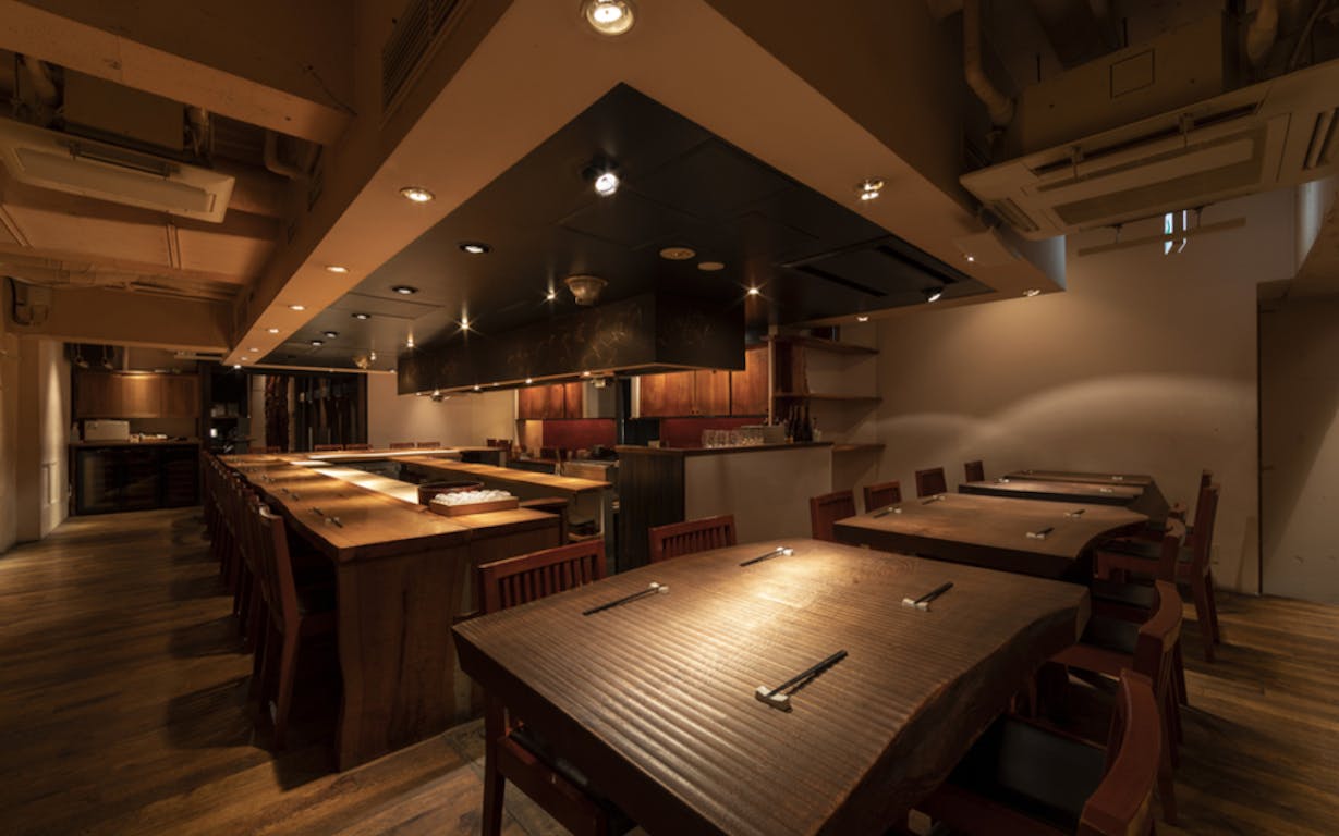 中目黒駅から徒歩8分の場所にある「ひぐらし」は、肩肘張らずに気軽に立ち寄れる和食店。パリッとしたカウンター割烹の空気感と、モダンな内装がこの街らしいスタイリッシュな空間を作り出します。落ち着いたカウンター席と、半個室のテーブル席でゆっくり食事と会話を楽しむのにぴったり。