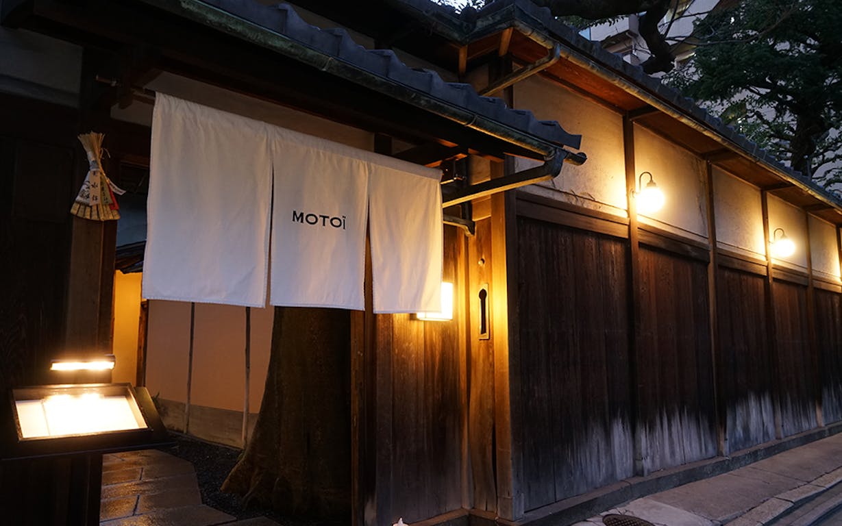 情緒溢れる京都・俵屋町、数々の名店が軒を連ねるこの地にひっそりと佇む「Restaurant MOTOI」は、大正時代の呉服商の邸宅をリノベーションしたモダンフレンチレストラン。伝統美とスタイリッシュなデザインが見事に融合した空間は、正座した時と同じくらいの目線で中庭を眺められるように床を下げるなど、細部にまでこだわりを感じます。