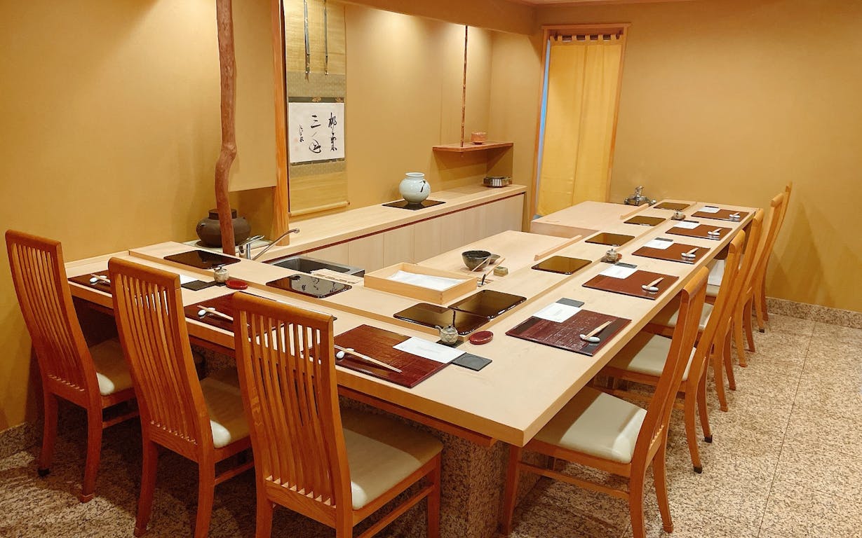 「八重洲 鮨 海味」は、10年連続で「ミシュランガイド東京」に掲載され、幾多の職人を輩出してきた「海味」の2号店。海味本店で修業を積んだ大将を迎え、東京の玄関口である八重洲に2021年9月にオープンしました。威勢の良い掛け声が響き渡る店内は、カウンター席に加えて個室も3室。コースは全3種あり、カジュアルなシーンから接待まで、幅広く利用することができます。