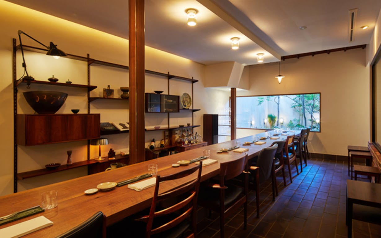 昼は窓から陽光が射し、夜になればひっそりと優しい明りを灯します。1階はキッチンが近い臨場感のあるカウンター席、2階はゆったり寛げるテーブル席と、デートや会食など用途によって使い分けができます。