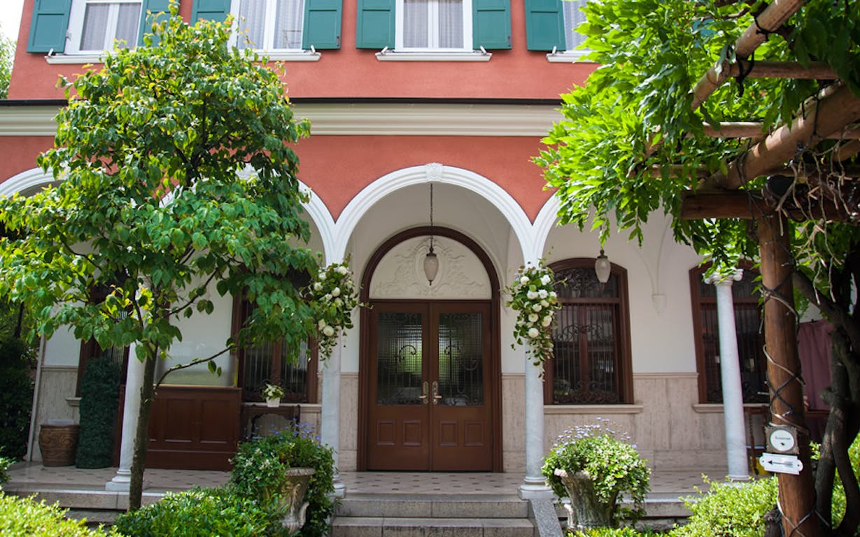 館内は、大理石を始めとする貴重な建材を使用し、海外から集められた調度品で設えられています。1階のメインダイニングは、白とこげ茶を基調とした重厚感ある雰囲気。奥に進むとモスグリーンの壁紙にシャンデリアや絵画がある空間が広がります。