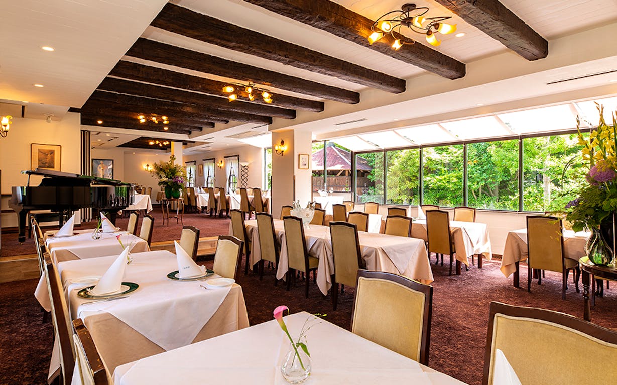 大きな窓から緑があふれる心地よいダイニングや記念日に利用したいアンティーク家具が配された個室を備え、家族のように温かくゲストを迎えます。歴史の重みを感じる空間、上質な料理とアットホームなサービスで、フランス料理のレストラン文化の真髄を感じられる名店です。