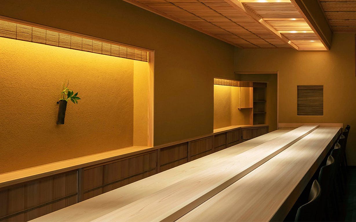 寿司を握るのは、東京で江戸前寿司の修業後、父親の店を継いだ2代目・高平康司氏。日本史上最年少の27歳で『ミシュランガイド広島・愛媛2018特別版』の二つ星に掲載されました。愛媛県は、瀬戸内海から太平洋側まで海が広がる魚介の宝庫。四国の地物の魚を中心に使用し、神経締めや血抜きなども自ら行なうなど、理想の味を追求したネタで握る寿司を求めて食通たちが全国から集います。