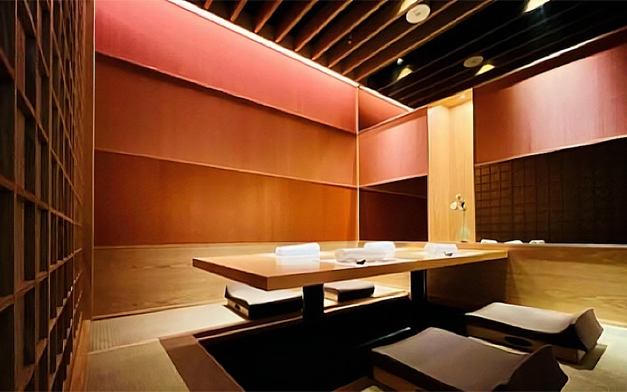 銀座駅より徒歩約1分「GINZA SIX」近くのビル4階に店を構える「おもき 離れ 銀座店」。神戸牛A5ランクを堪能できるしゃぶしゃぶ・ステーキをはじめとするバラエティに富んだ肉会席コースが人気です。きめ細かく上品な甘みのある赤身と香りのハーモニーは神戸牛ならではの魅力。落ち着いた白木調の和空間は全席個室で、広々とした空間の中、しゃぶしゃぶをメインに、肉寿司、タルタルのほか、さまざまな調理法で神戸牛の魅力を楽しめます。