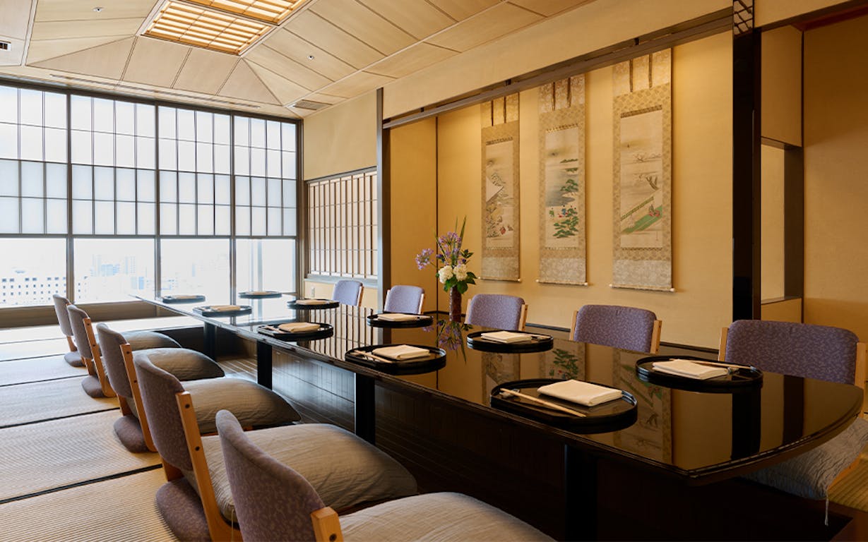 名古屋駅に直結している「JRセントラルタワーズ」の12階に位置する「名古屋浅田」。好アクセスな場所にありながら、お店の暖簾をくぐると、都心の喧騒を忘れる非日常空間が広がっています。ハレの日や、接待・会食にもふさわしい畳敷きの個室で、大切なひとときをどうぞ。