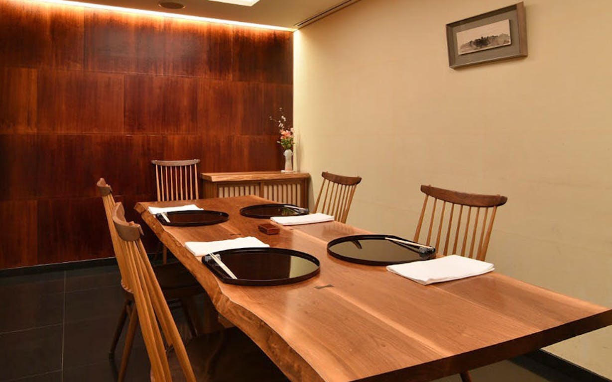 料理の腕を振るうのは、ミシュラン星付きの日本料理店出身の上野陽平氏。伝統を守りながらも、中華やフレンチ、イタリアンをはじめとした技法を取り入れるなど、革新を織り込んだ日本料理をいただくことができます。冬には天然とらふぐや松葉ガニなど、季節を感じる高級食材を使ったコース料理がランチタイムでも予約が可能。個室料無料のプランは、接待や会食に最適ですね。