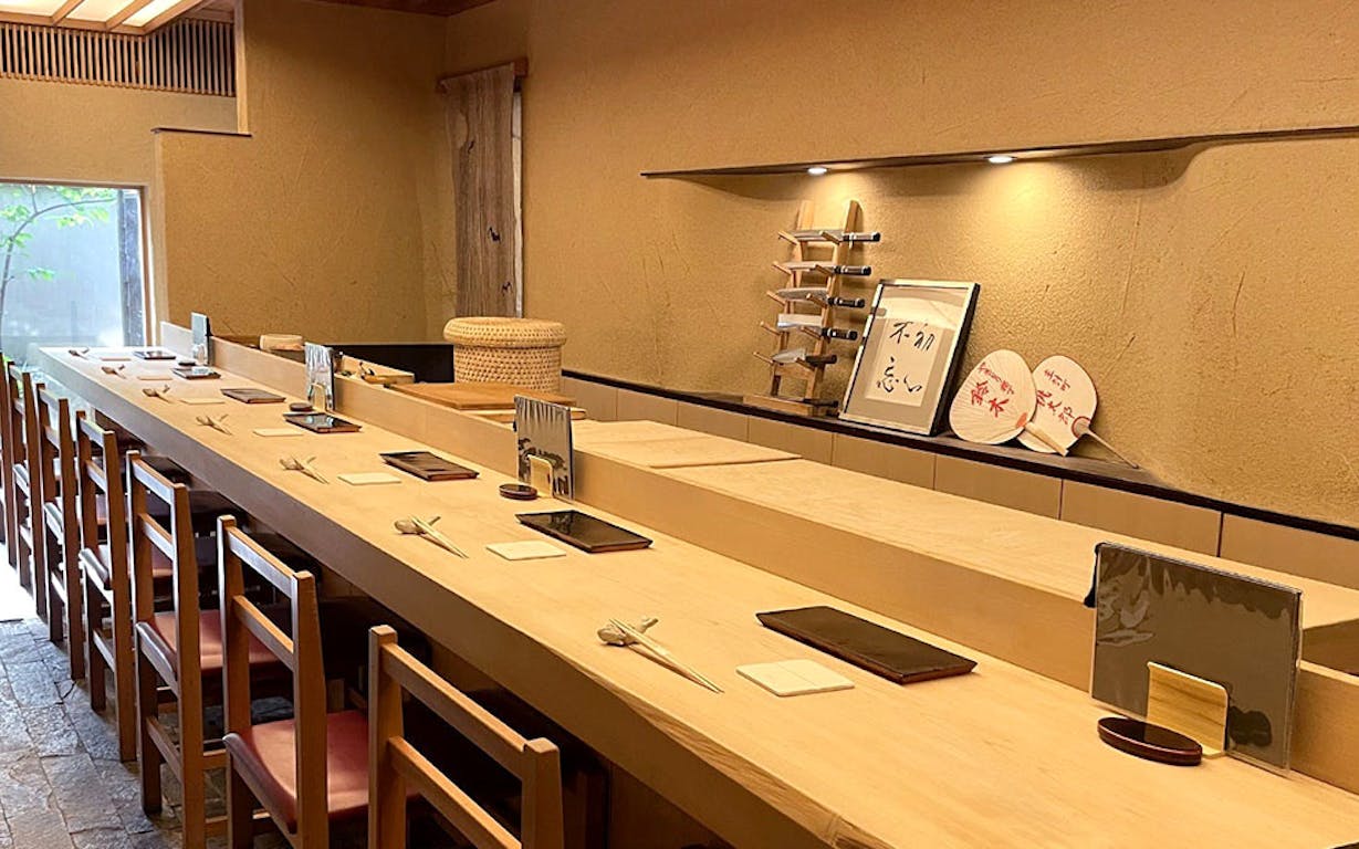 金沢駅から車で10分。「兼六園」にもほど近い彦三町に店を構えるのが「鮨 木場谷」。寿司の激戦区金沢でも人気を誇り、「ミシュランガイド北陸2021特別版」で一つ星を獲得しています。店内は、整えられたカウンターや手入れされた箱庭など、風情たっぷりの空間。開店時間は17時なため、帰りの新幹線に間に合う点が嬉しい部分です。