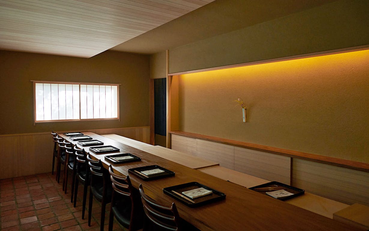 鎌倉駅から徒歩約15分。安国論寺近くの山の麓に位置する古民家が、日本料理店「鎌倉 北じま」です。豊かな緑と小鳥のさえずりに囲まれている店内は風情たっぷり。8席あるカウンターで、あふれる臨場感の中、食事を楽しめます。料理はもちろん器にもこだわりが。初期の伊万里焼や古染付、さらに陶芸家として名高い北大路魯山人の作品を使用しています。