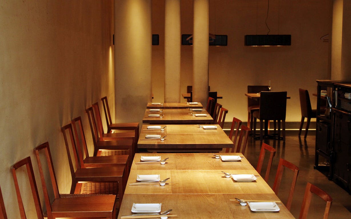 「水剌間 恵比寿本店」があるのは、JR恵比寿駅東口を出てすぐのビルの地下。水刺間(スラッカン)は、“宮廷の台所”意味する言葉。店内はガラス張りのキッチンを囲むように客席が並びます。