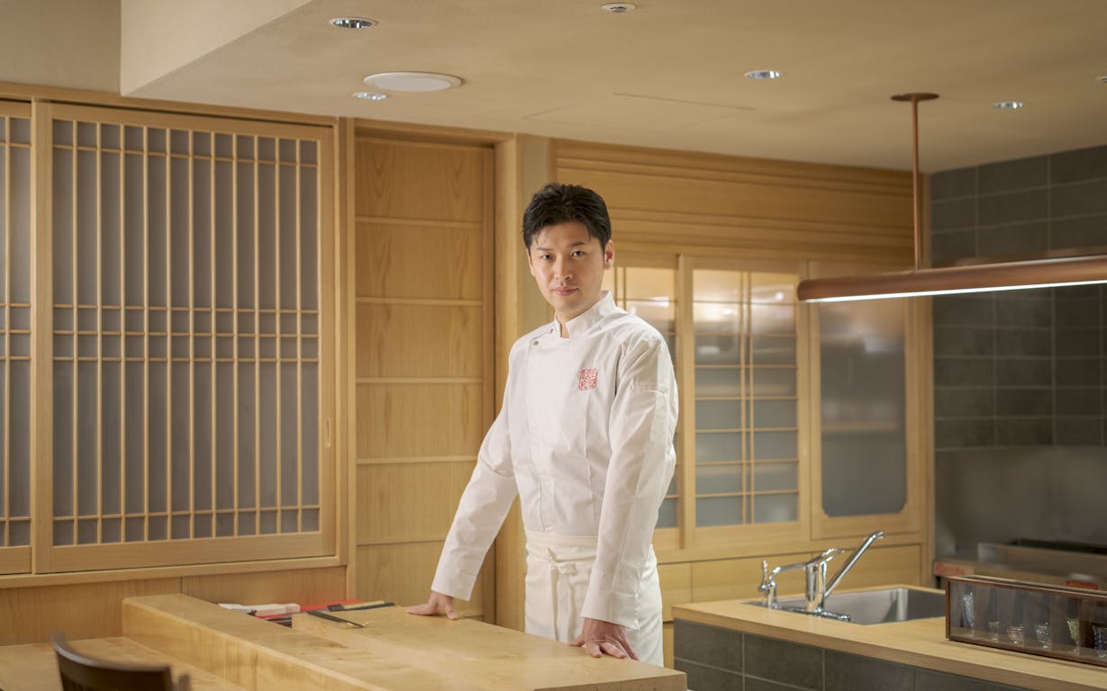 本物の美味しさを追求すべく、全国各地に足を運んで厳選した食材を用い、最適な包丁、火入れ、温度、食材の組み合わせを一皿に表現。シグネチャー料理の「和郷特製『あんぱん』」は、パンにあん肝、奈良漬け、芽ネギを乗せたユニークな一品です。伝統に独創性を加えた新しい味との出会いを満喫しましょう。